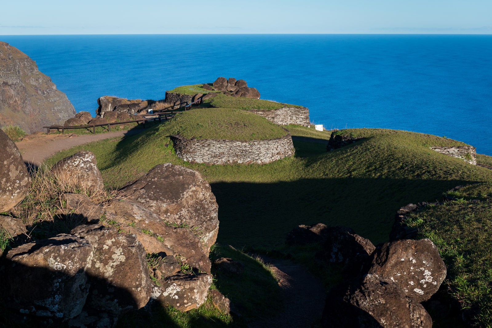 Por la mañana, salida hacia Ahu Vinapu, destacado por su arquitectura similar a las construcciones incas. Continuación hacia el volcán Rano Kau, cuyo cráter ofrece una de las vistas más impresionantes de la isla.
